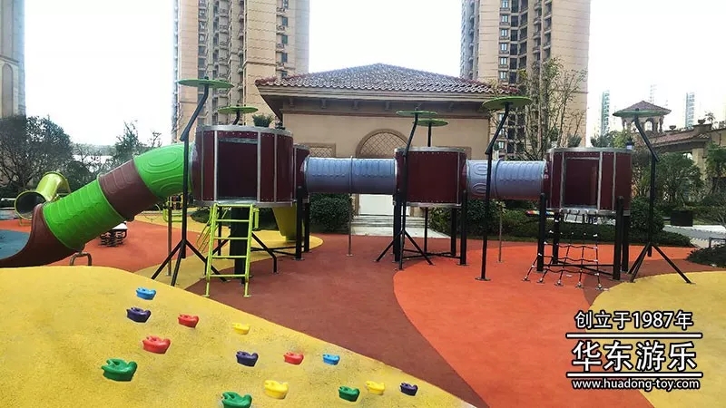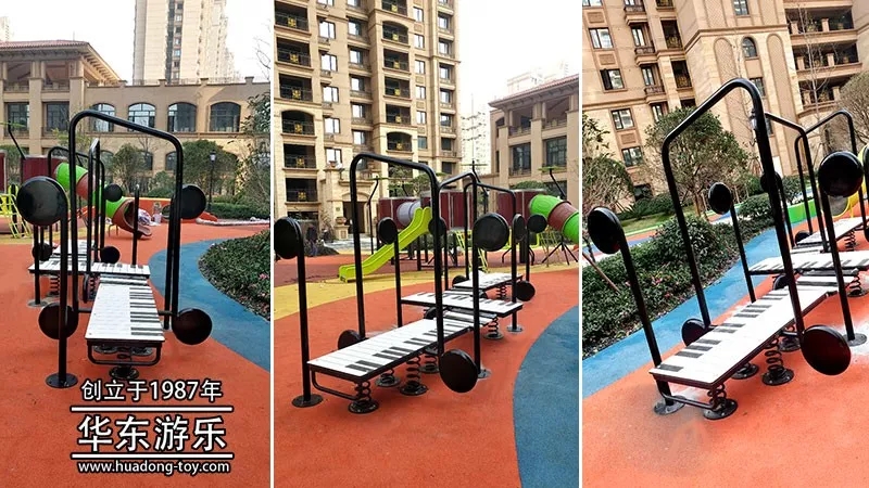 楚霖鼎观世界2期是金沙游乐自主设计的以音乐会为主题的游乐项目,融合了架子鼓、钢琴、长号音符、军鼓等音乐元素,同时也加入了摇摇乐、跷跷板等儿童游乐设备,也为爱健身的朋友配备了漫步机、高低单杆等健身设备。