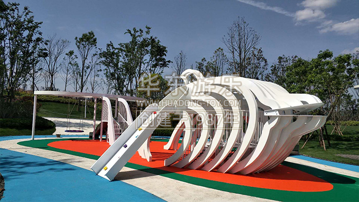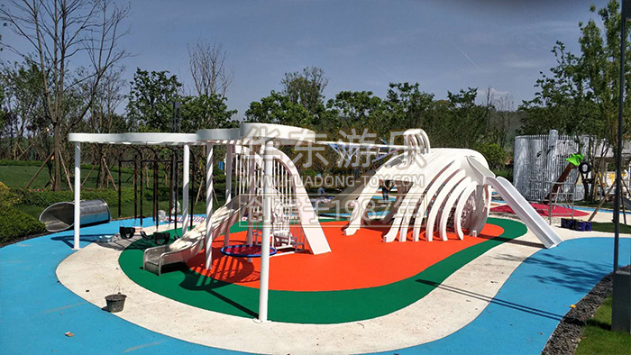 金沙游乐贵州贵阳龙里案例是一个以鲸鱼为主题的综合性项目,内置了脚踏喷泉,不锈钢滑梯、秋千、钻洞等游乐设备。
