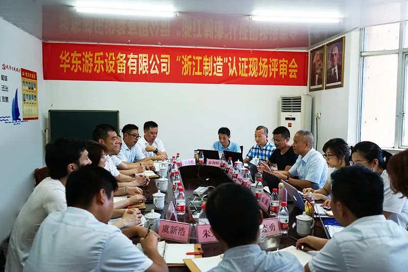夏日炎炎,酷热的天气抵挡不住金沙游乐的激情,7月13日—14日,由中国质量认证中心一行6人组成的资深专家审核组,来到金沙游乐开展“浙江制造”现场认证审核,公司董事长吴建静、总经理吴爱秋出席会议并陪同审核。