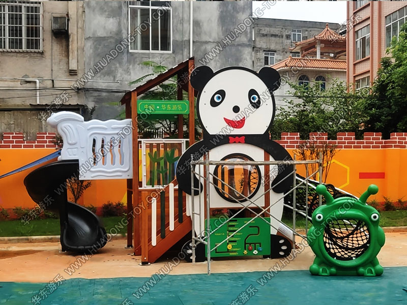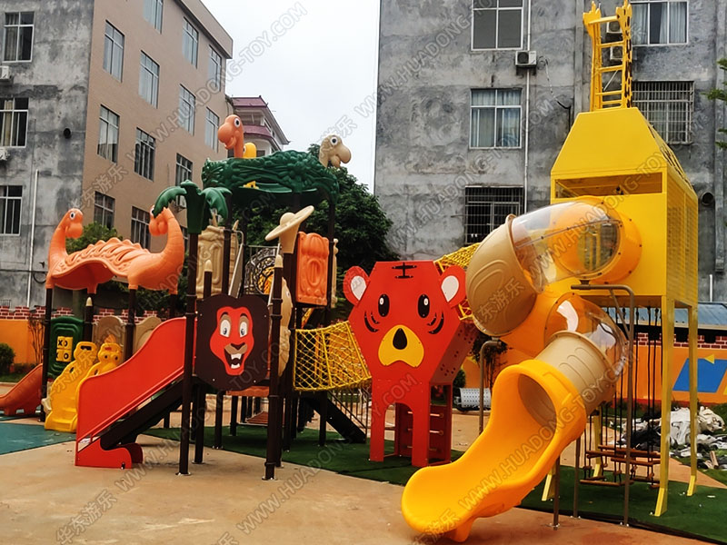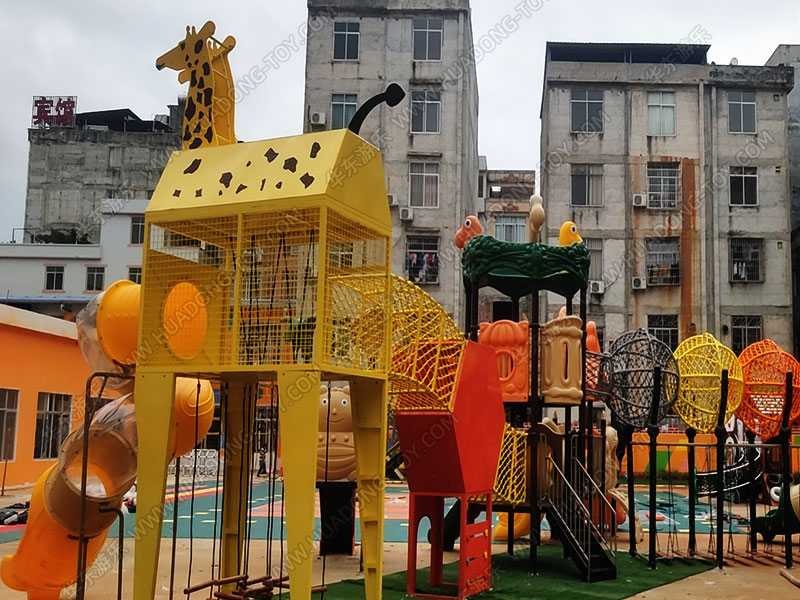 该幼儿园项目采用的是金沙游乐自主研发的动物世界系列大型滑梯组合,该滑梯以可爱的小动物为设计模型,让小朋友可以和谐的与小动物相处,教育他们能够保护小动物,爱护小动物。