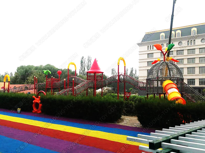 • 鄂尔多斯乌审旗第二幼儿园项目是一个爬网系列的项目,此项目设计了闯关,滑梯、爬绳等游乐设施,在很高的程度上锻炼了小朋友敢于挑战的勇气和锻炼身体的意志力。