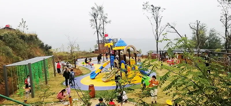 甘山晟境儿童休闲区选用了金沙游乐生产的跨国欢乐岛滑梯、动物系列滑梯、攀爬墙‘爬网、摇摇乐、旋转转椅、音乐版等游乐设备,给小朋友提供了休闲、玩耍的场所。