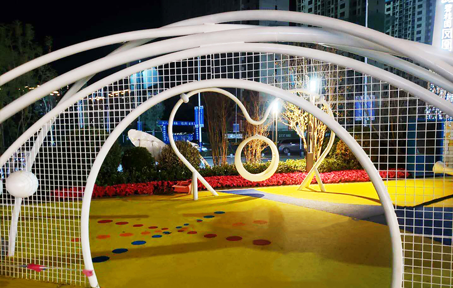 碧桂园风情家园非标定制案例采用的是金沙游乐自助研发、设计和生产的游乐设备,以2020世界遭受的新冠病毒作为主体设计元素,展示了人类经过不断的携手共进,不断的努力,最终战胜了这场无硝烟的战争。