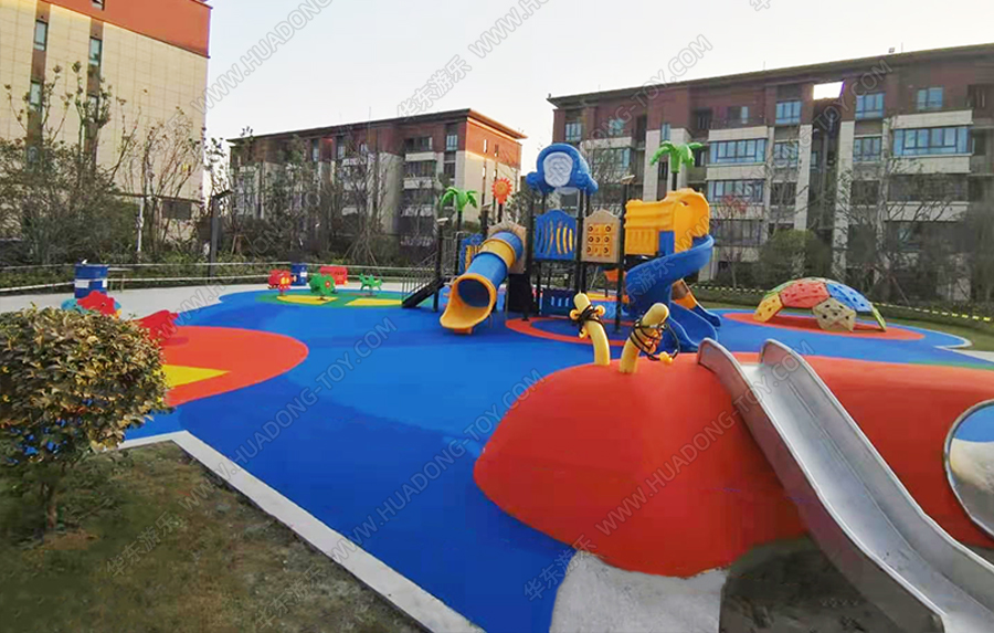 金沙游乐祥云倒立屋是金沙游乐自主研发设计的大型户外滑梯组合,该滑梯具有设计美观,颜色艳丽,使用时间长等特点,深受小朋友的喜爱,在该项目中除了滑梯还设置了不锈钢滑梯,沙池,摇摇马,秋千组合等游乐设备,不仅仅丰富了小区的生活也为小朋友的玩耍提供了一个很好的场所。