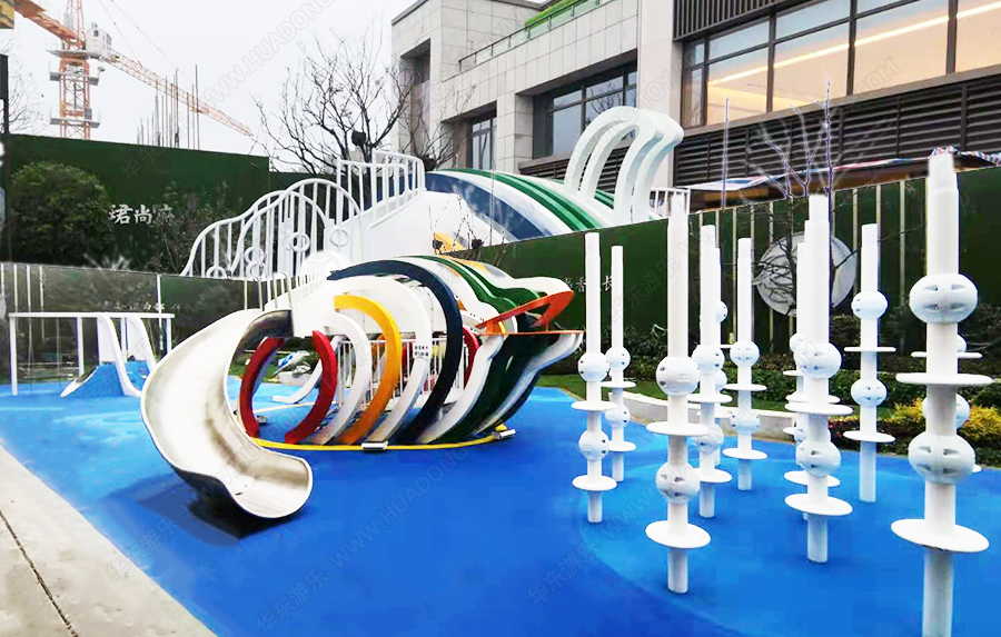 珺上府是碧桂园旗下的一座房地产,鲸鱼骨架案例皆在为该小区的人提供休闲、娱乐、玩耍的场所,该游乐场设置了小朋友喜欢的攀爬、钻洞、爬网、秋千等游乐设备,让小朋友能够在这里无忧无虑的玩耍、也为丰富了在该小区的居民生活方式。