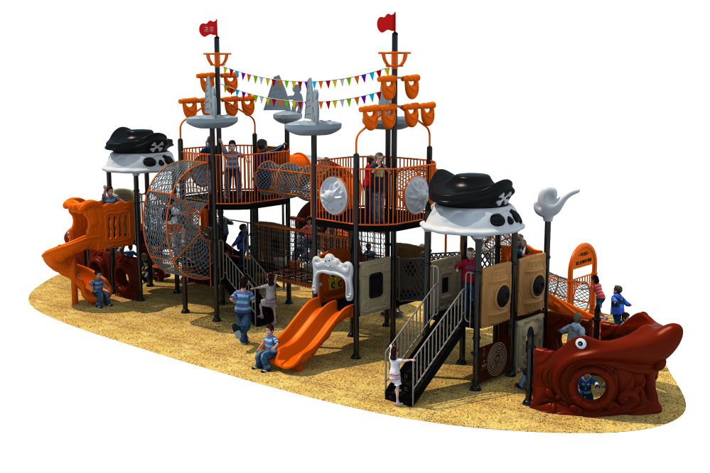 登上Jack船长的船,渐渐驶入大海,耳边似乎传来海盗们吹响的起锚号角声,这是幽灵海盗即将出海,开始新一轮的争夺和冒险。金沙海盗船系列,以海盗船冒险刺激为设计主题,通过多样化的运动组合,成就孩子们海盗冒险的梦想。
