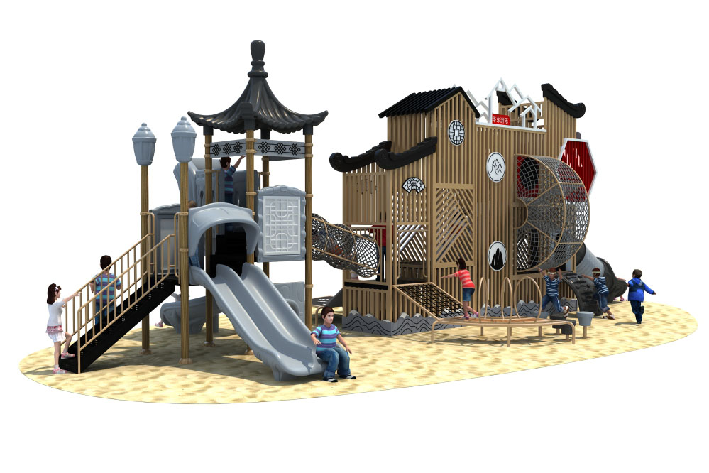 • 中国风系列是一种具有中国风建筑特色的大型滑梯组合,以苏州园林与徽派建筑为灵感,将凉亭、房屋、大红灯笼融入现代游乐设备,体现建筑美学的简洁、复古、大方,为孩子打造一个奇妙的游乐世界,积极培养孩子对中国传统文化的热爱,弘扬中国传统与亲身体验。