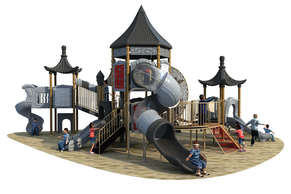 • 中国风系列是一种具有中国风建筑特色的大型滑梯组合,以苏州园林与徽派建筑为灵感,将凉亭、房屋、大红灯笼融入现代游乐设备,体现建筑美学的简洁、复古、大方,为孩子打造一个奇妙的游乐世界,积极培养孩子对中国传统文化的热爱,弘扬中国传统与亲身体验。