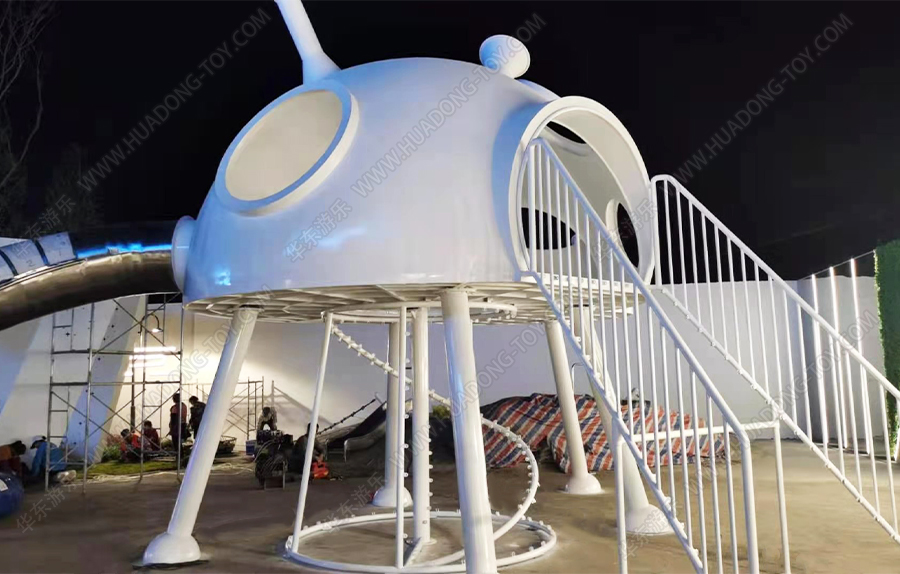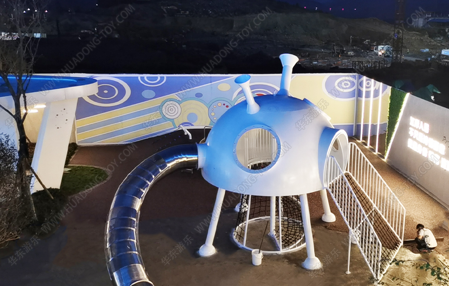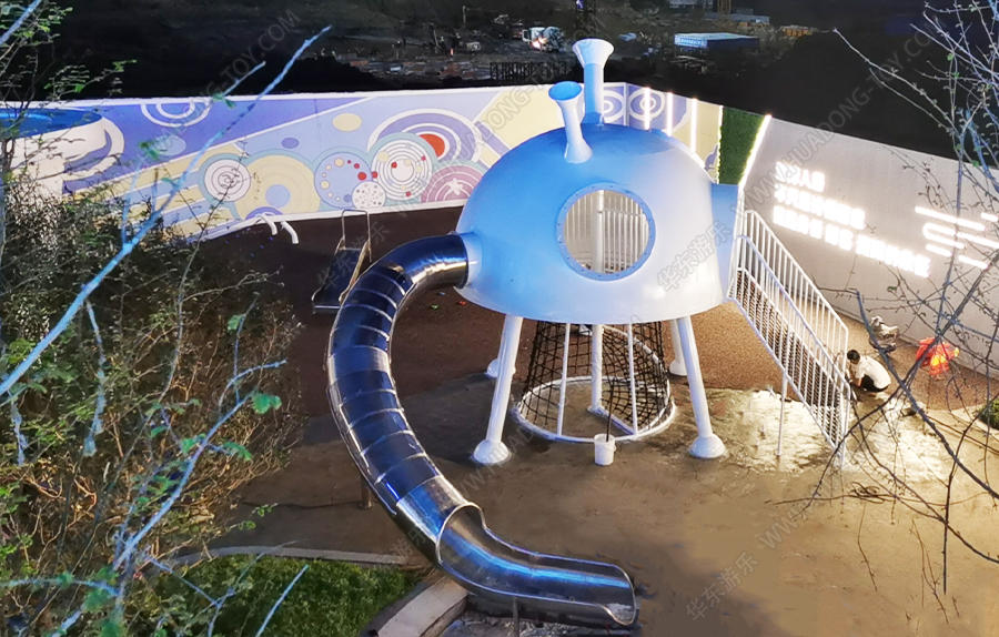隆回县碧桂园天玺湾非标定制案例采用的是一个由金沙游乐自主研发和设计的一款造型独特,外观新颖的具有不锈钢滑桶、爬网、钻洞等功能的游乐设备,并在该游乐场设置了摇摇乐、秋千等游乐设备,为生活在该区域的小朋友提供了一个休闲,娱乐 ,健身的场所。