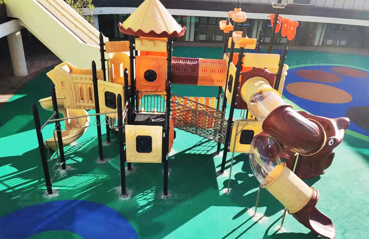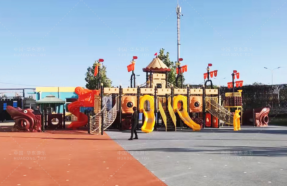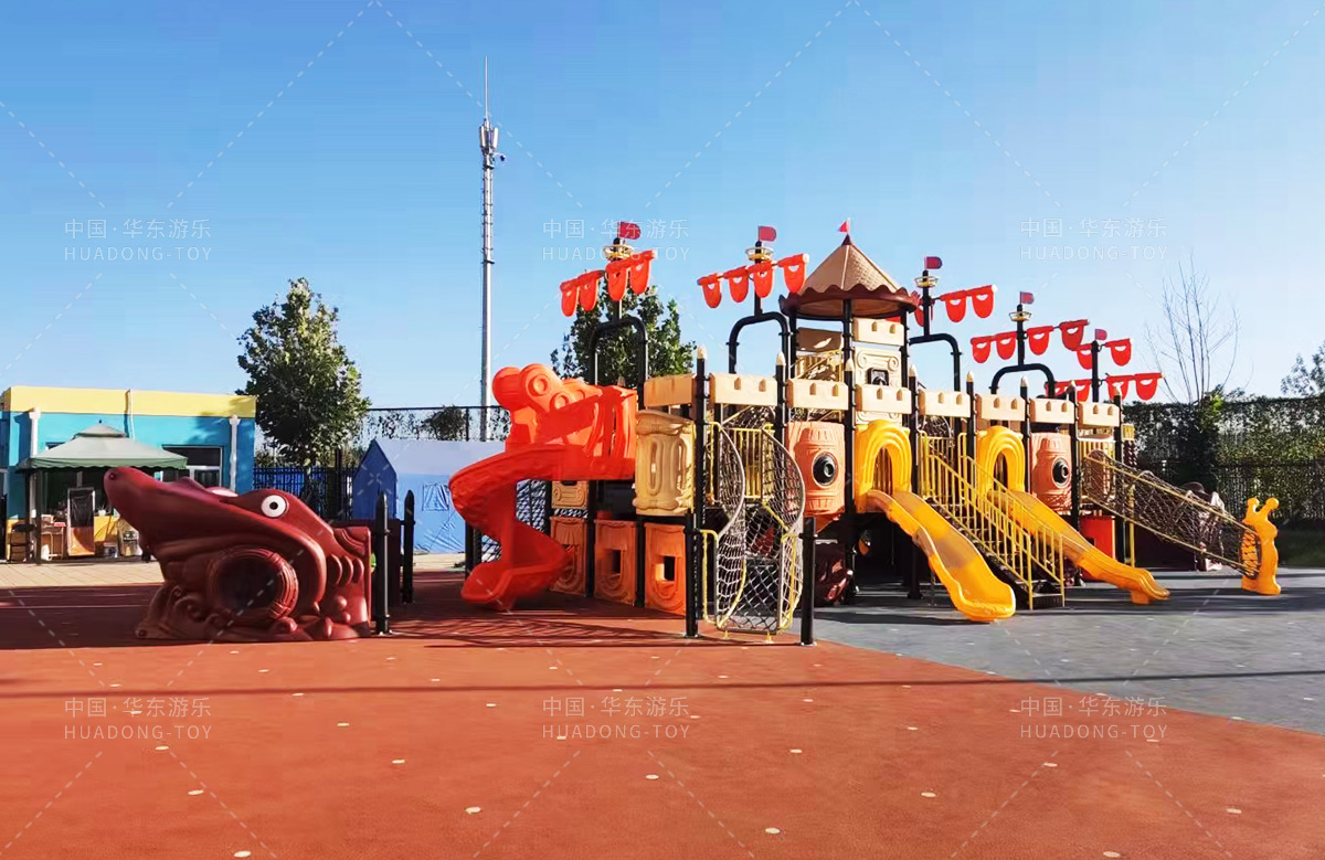 北京市朝阳区朝花幼儿园选用的是金沙游乐自主研发的海盗船系列组合滑梯,该套设备设置了大型S型滑梯、攀爬网、钻洞、网桥、攀岩等功能,为老师的教学提供了方便,同时也为校园提供了生机与活力。