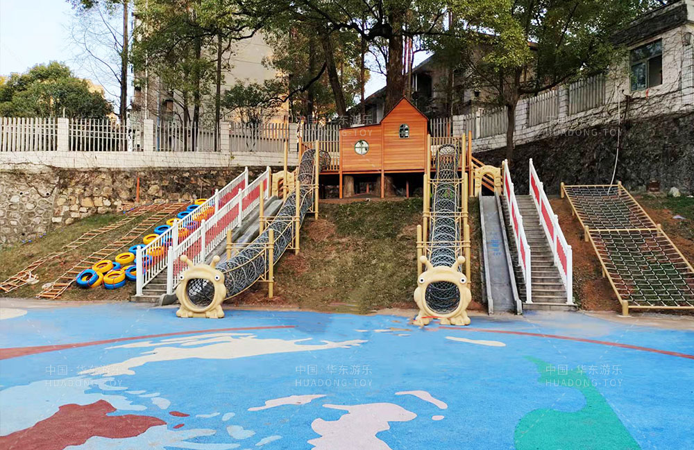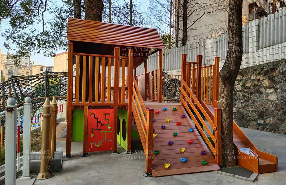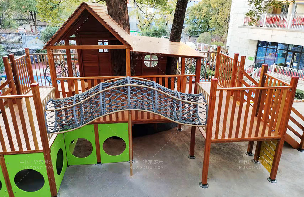湖南省株洲市株机幼儿园是一家专业的学前教育培训机构,此次项目采用的是金沙游乐自主研发的木制非标游乐项目,整个项目设置的有木制游戏小屋,攀爬墙、攀网钻洞、轮胎攀爬等游乐设备。