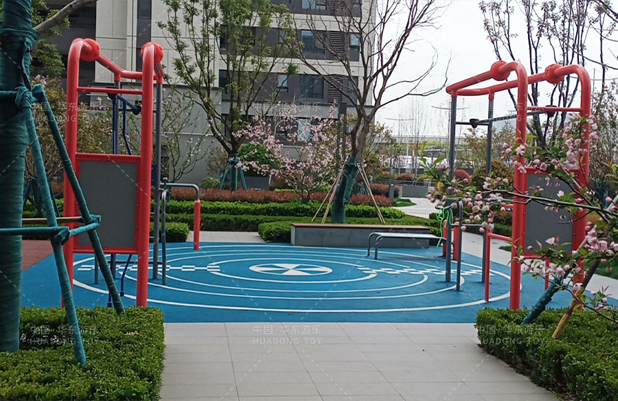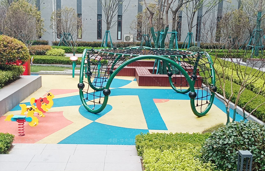 该项目选用的是金沙游乐自主研发和生产的网绳攀爬、万能健身器、小型滑梯为一体的综合性游乐园、该游乐园设计了攀爬网、摇摇乐、健身器、手推旋转椅等游乐器械,为生活在该小区的人民提供了一个休闲、娱乐的场所。
