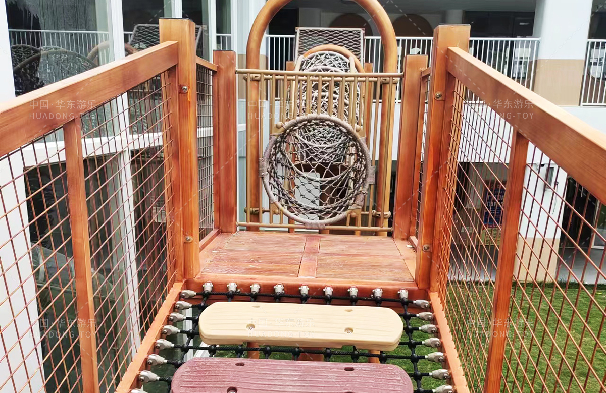 高峰幼儿园是一个专业的学前教育培训机构,此次选用的是金沙游乐设计和生产的木制非标定制的游乐设备,设计了具有攀爬网、钻洞、秋千、木制拓展、木制小屋、不锈钢滑梯等功能的游乐设备,丰富的功能、优质的设备、让整个校园充满了生机与活力。