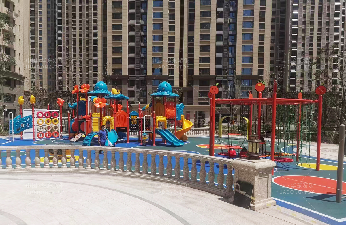 瑞城嘉园选用的是金沙游乐自主研发和生产的游乐设备,整个游乐场添置了动物系列滑梯、森林系列滑梯,万能秋千组合等游乐设备,为生活在这里的人民提供了一个休闲、娱乐、遛娃的场所。