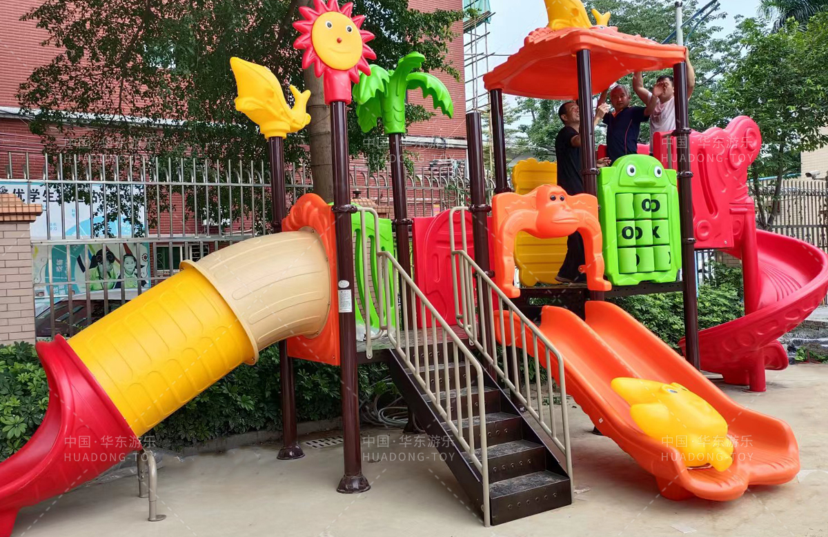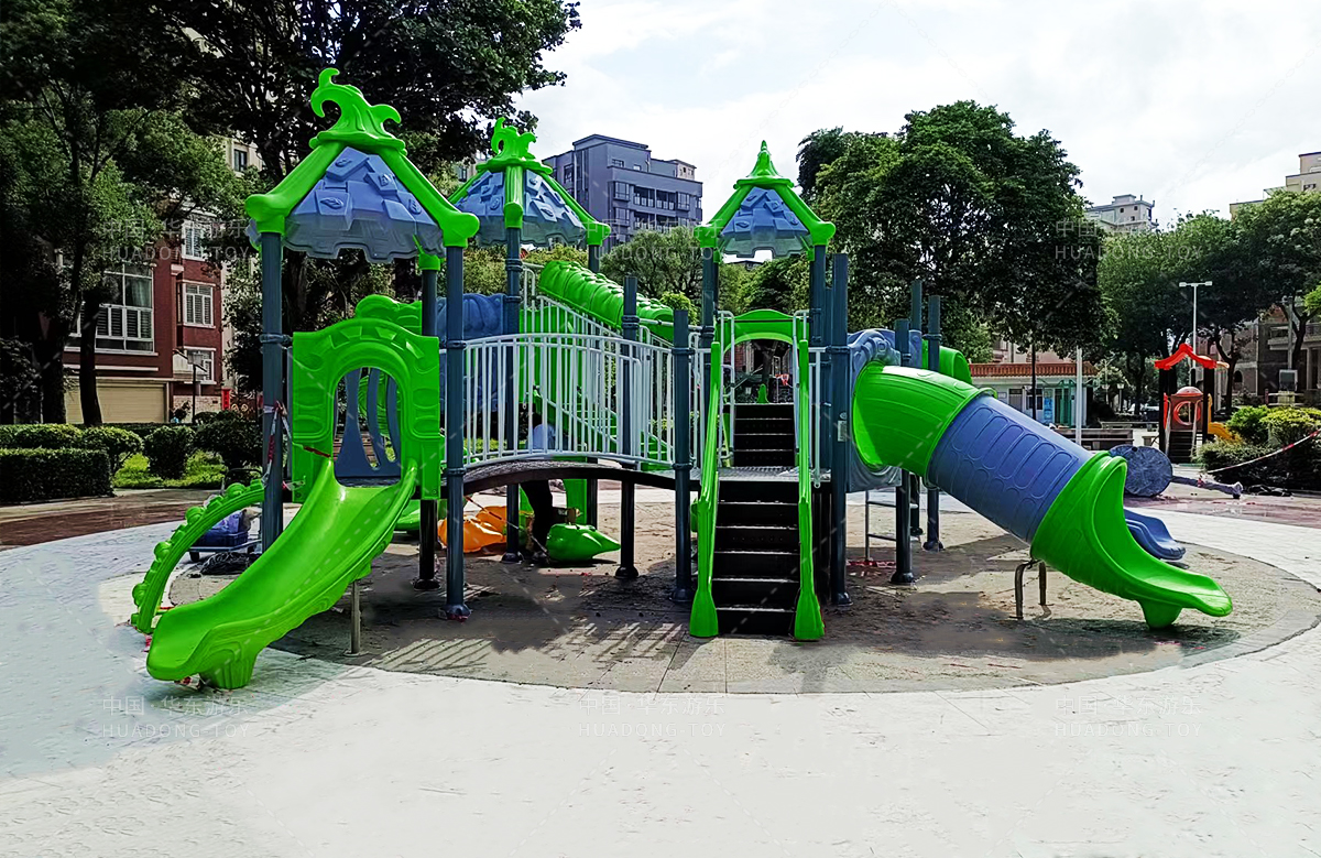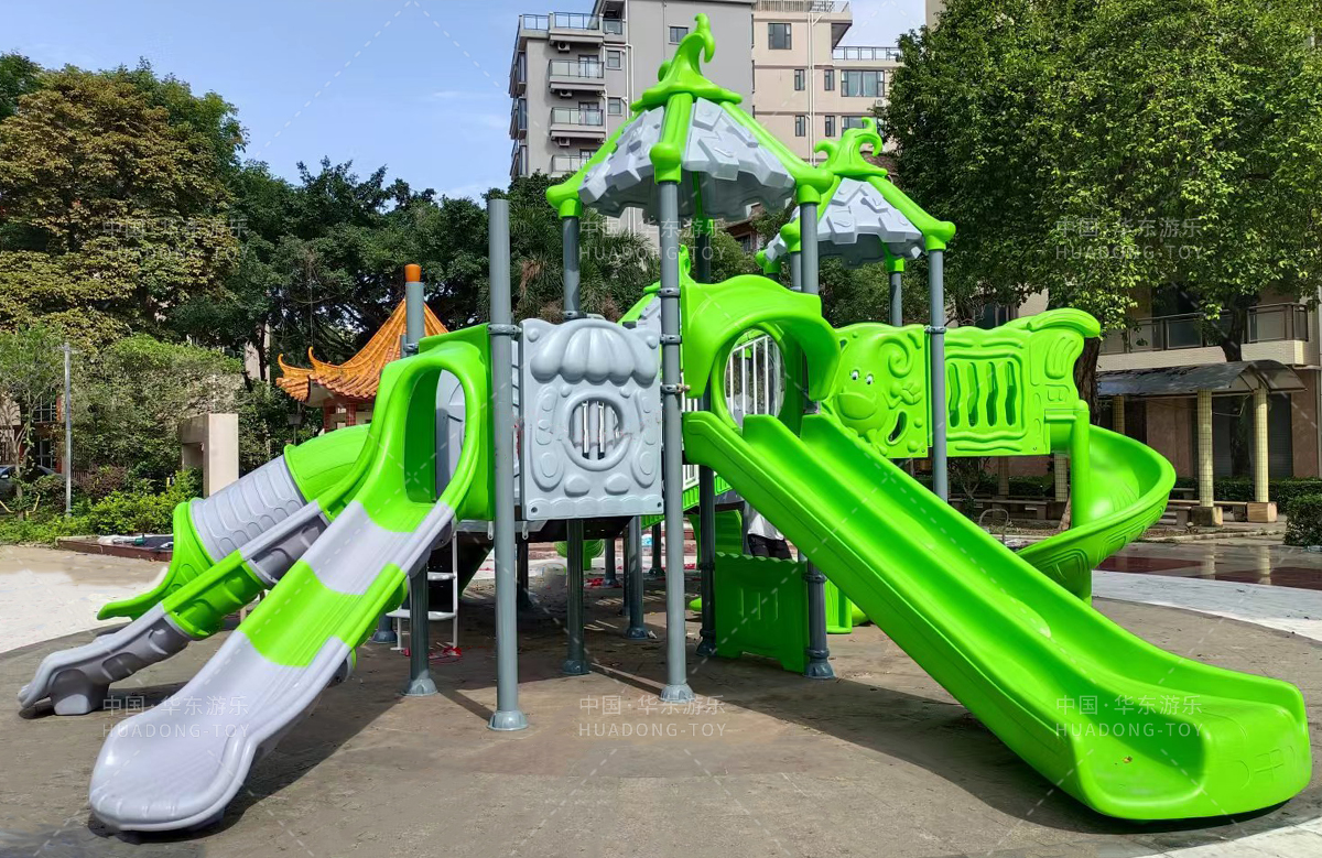 该小区选用的是金沙游乐自主研发和设计的具有攀爬、钻洞、滑梯为一体的魔法屋系列组合滑梯和动物园系列滑梯,让生活在该小区的人有一个休闲娱乐的场所。