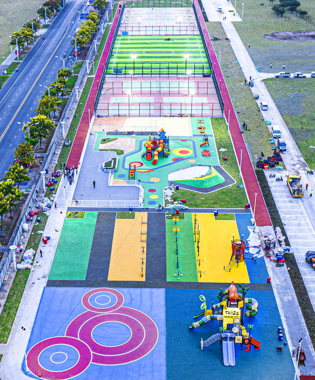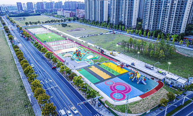 宿城区宿苏工业园区选用的是金沙游乐自主研发和设计的组合滑梯系列产品,是 园区根据宿迁市市区公共空间治理“三年行动”实施方案,瞄准区内居民对民生项目需求,提前谋划青海湖西路微公园、苏州公园童趣园、玄武湖路北侧临时健身公园和中央商务区景观提升等民生项目建设,整个项目完成后产生了巨大的影响力,并2022年10月12日刊登于《人民日报》。