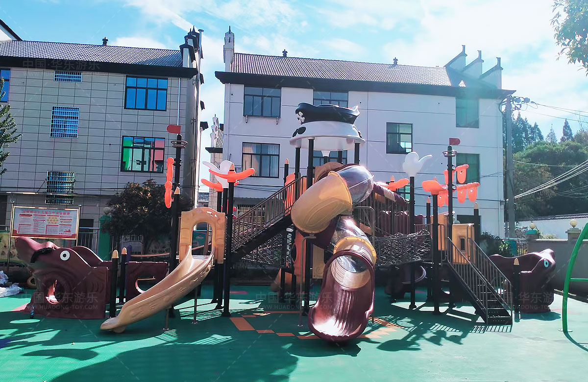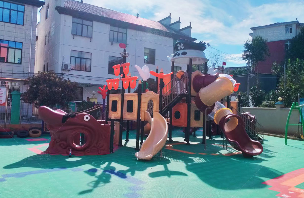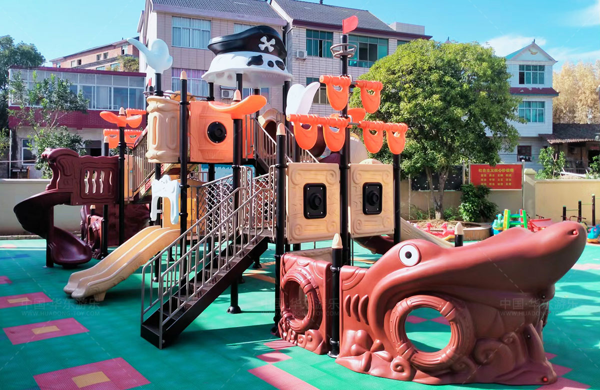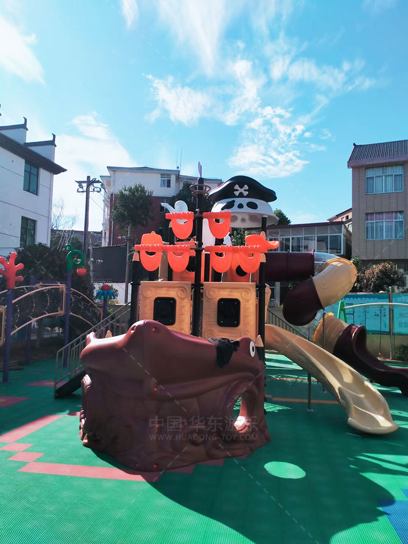 江西省上饶市玉山县四股桥中心幼儿园是一个专业的学前教育机构,为了更好的让孩子们有一个学习、娱乐的场所,该项目选用的是金沙游乐自主研发和生产的海盗船系列组合滑梯,该滑梯具有主题性强,功能齐全、玩法多样、使用寿命长等特点,深受小朋友们的喜爱。