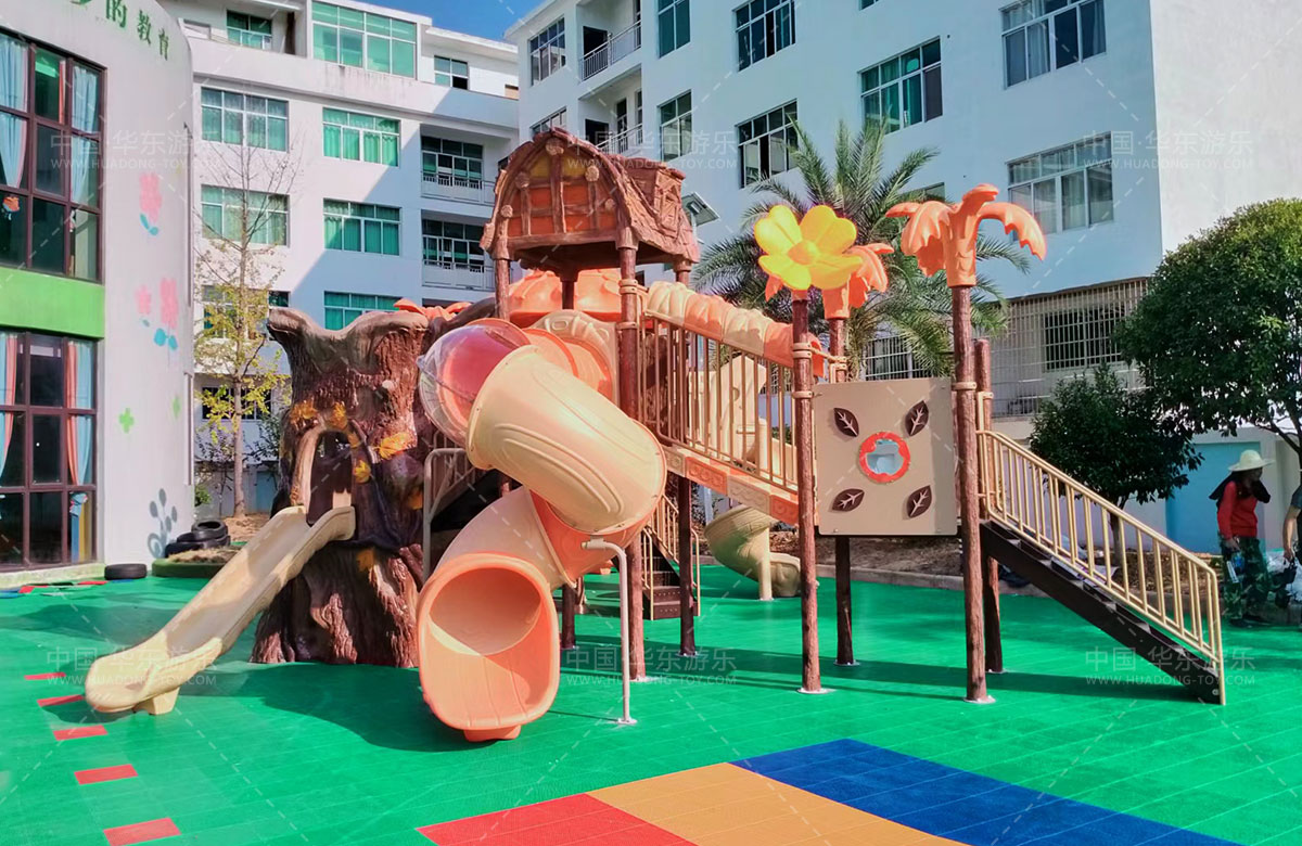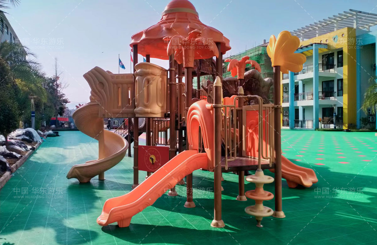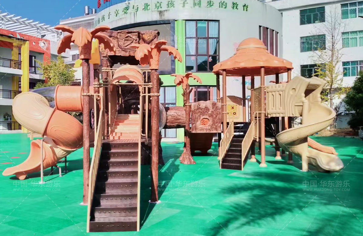 江西省上饶市临湖中心幼儿园是一个专业的学前幼儿教育学校,此次选用的是金沙游乐自主研发和设计的具有滑梯、钻洞、攀爬等功能为一体的远古部落系列的组合滑梯,该滑梯具有功能齐全、颜色艳丽、主题性强、使用寿命长等特点,深受小朋友们的喜爱。