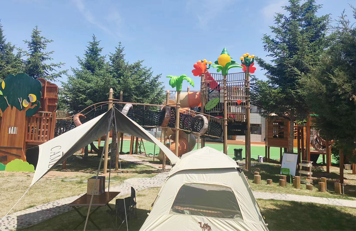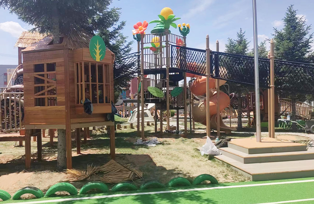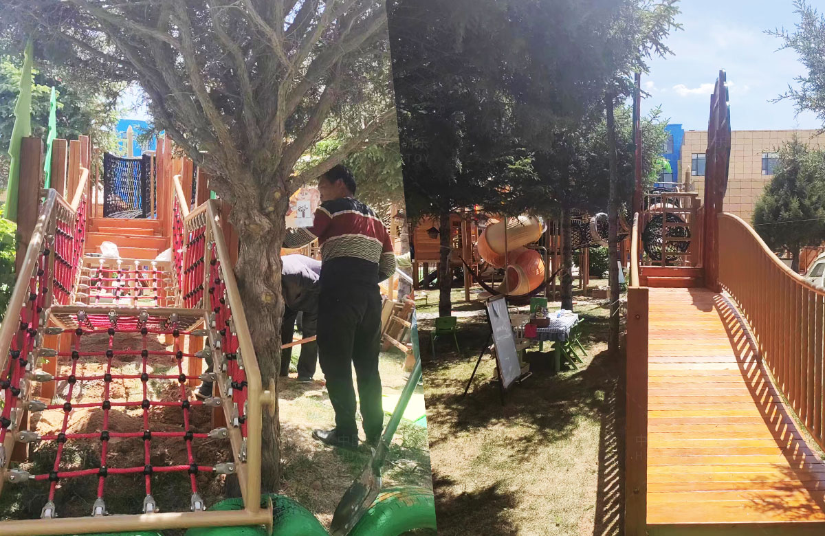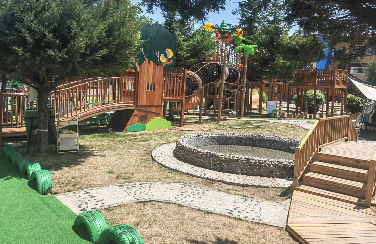 该幼儿园是一个专业性的学前教育培训机构,选用的是金沙游乐自主研发和设计的具有空中攀爬网、钻洞、空中栈道、游戏小屋、直行滑梯为一体的综合性 游乐设备,这些设备的选择不仅仅丰富了孩子们校园的生活,还很好的锻炼了小朋友的攀爬能力、四肢的协调能力、攀爬过程中的平衡能力,同时也促进了孩子们大小脑的发育。
