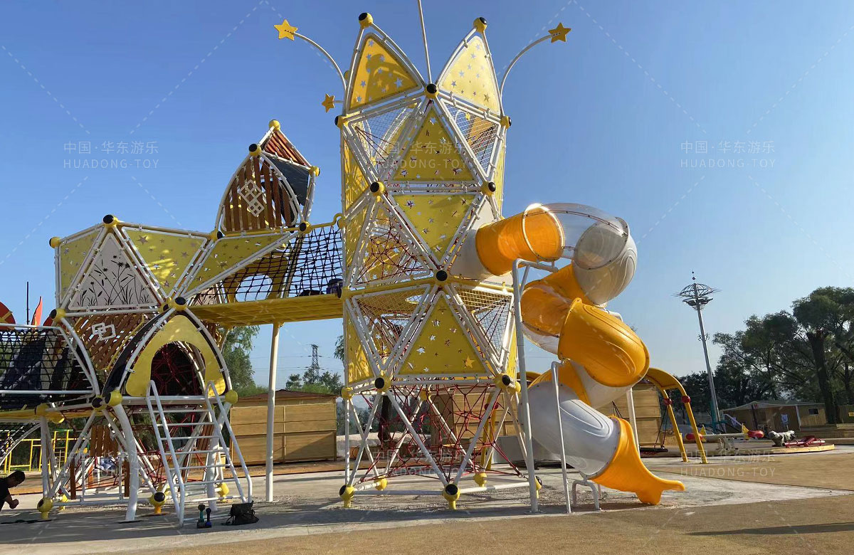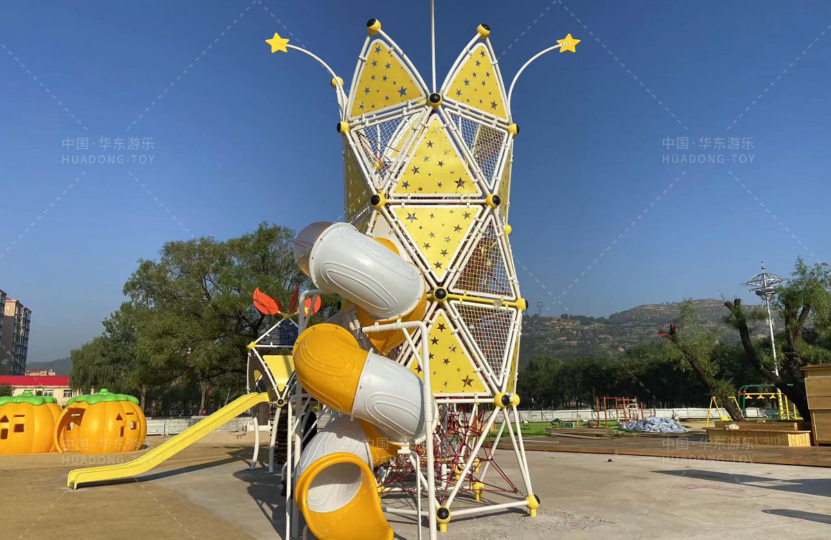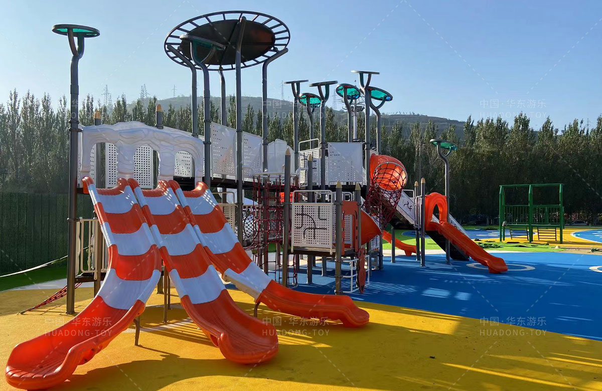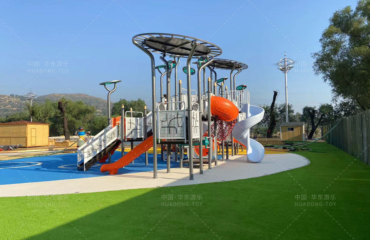 崔家沟体育广场体育广场选用的是金沙游乐自主研发和设计的非标定制系列游乐设备,分别设置了攀爬网、钻洞、不锈钢滑梯、儿童摇摇乐、儿童秋千、木质拓展等游乐设备,很大程度上丰富了孩子们的娱乐生活,也为整个场地提供了生机与活力。