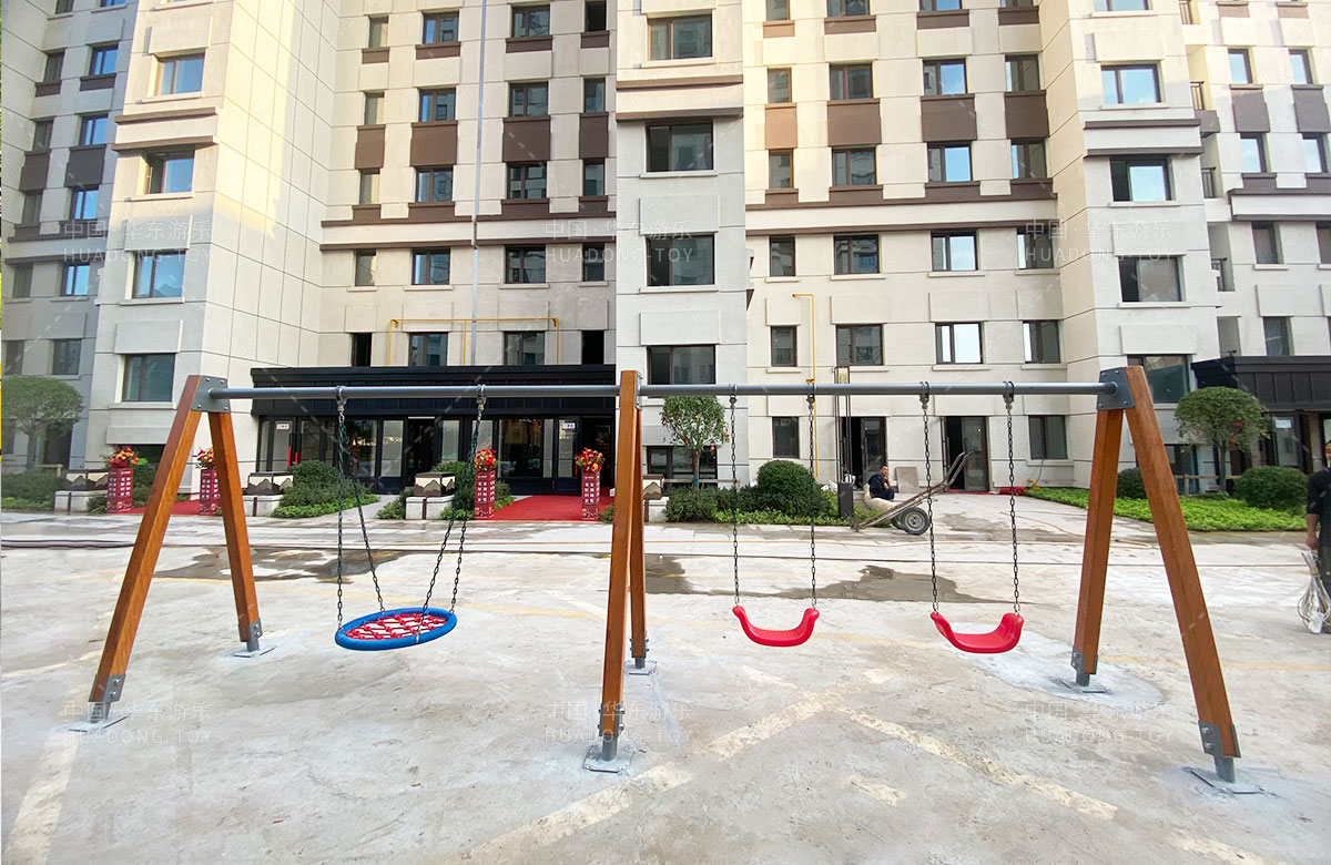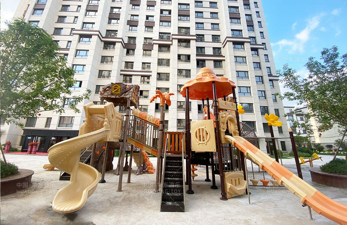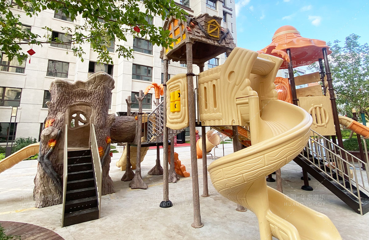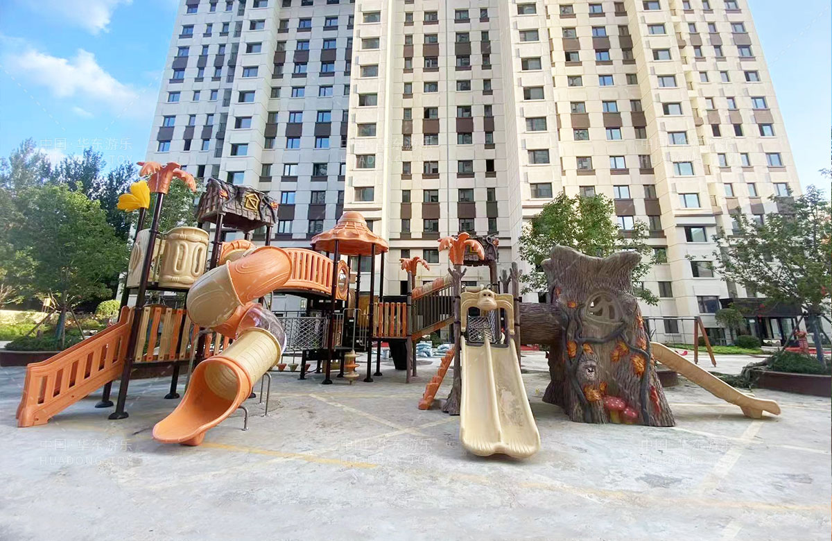 哈尔滨市南岗区学府选用的是金沙游乐自主研发和设计的远古部落系列的组合滑梯,该滑梯具有功能齐全、玩耍多样、使用寿命长等特点,除此之外还增加了儿童跷跷板、儿童秋千等儿童游乐设备,不仅仅丰富了孩子们的玩耍场所,也小区的生活增添了更多的生机与活力。