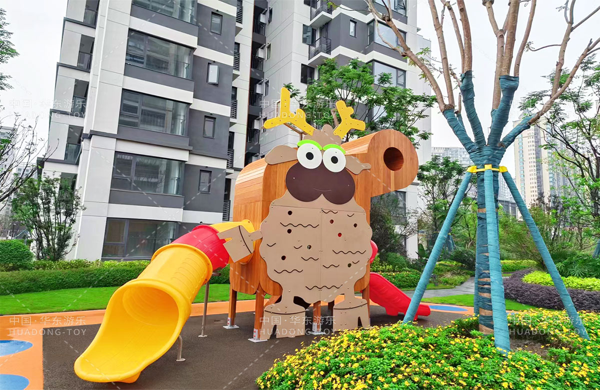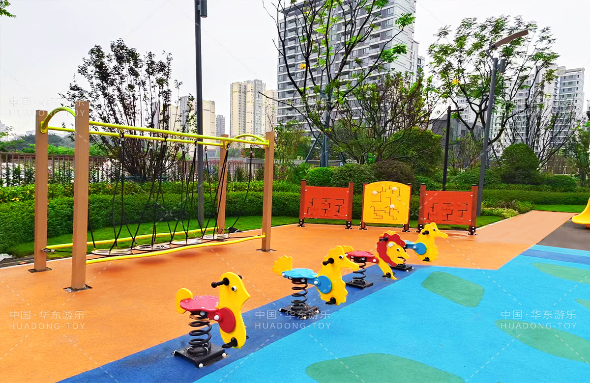 四川省成都市新城林屿溪选用的是金沙游乐自主研发和设计的非标定制系列的游乐设备,为了更多让小朋友们有一个玩耍的场地,整个游乐场分别设计了儿童摇摇乐、儿童秋千、成人健身器、趣味迷宫、平衡吊桥、旋转椅、象鼻组合滑梯等游乐设备。
