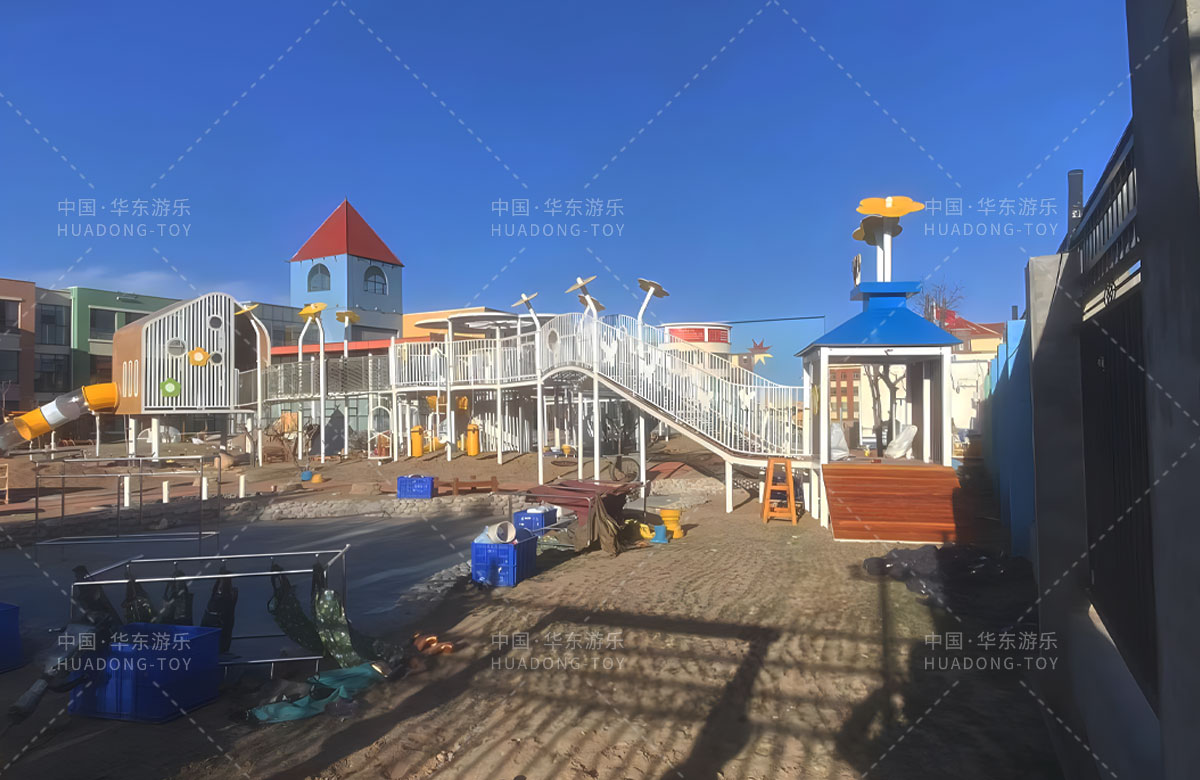 鄂尔多斯市鄂托克旗蒙古族幼儿园是一家专业的学期教育培训机构,此次选用的是金沙游乐自主研发和设计的非标定制系列的游乐设备,分别设计了空中廊架、月亮秋千、平衡踩桩、儿童沙袋、大型滑筒、儿童秋千、攀爬网、游戏小屋等功能,为孩子的玩耍提供了保障,也为老师的教学提供了一个很好的场所。