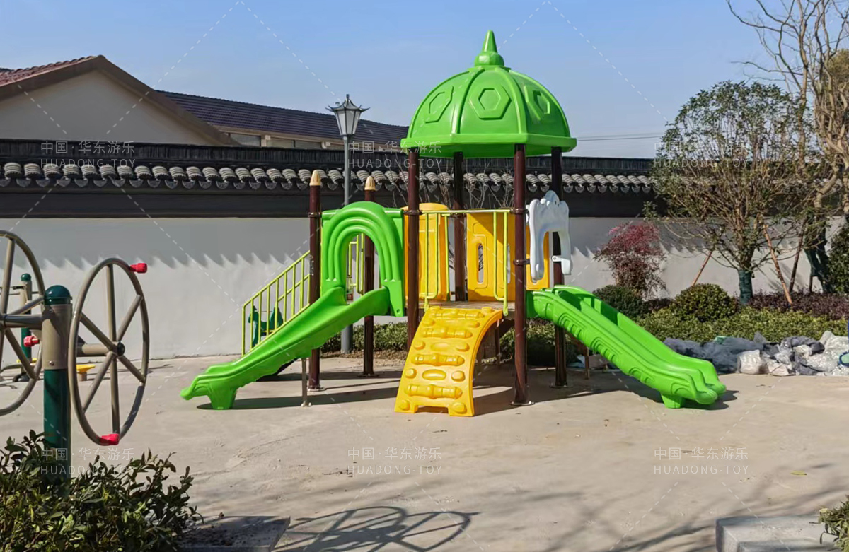 常州市桃花院子选用的是金沙游乐自主研发和设计的别墅屋系列组合滑梯,该滑梯采用滚塑一体成型,具有颜色艳丽、使用寿命长等特点,同时为了更好的为生活在该小区的人们服务,还设置了各种类型的健身器,以及小朋友喜欢的儿童跷跷板、儿童秋千和传声筒等游乐设备,不仅丰富了小区的生活,也为小朋友的玩耍提供了一个很好的场所。
