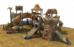 • 远古部落系列虽然名字带着“古”字,但是在设计细节处无不透露着艺术与创造性。当孩子在仿真树中探索、冒险、嬉戏游玩时,就像穿越到古老的神秘森林;粗略的树干包围着他们,头顶是高耸的茅草屋,触感真实的枯枝走廊,还有随处可见的小动物们…… 远古部落系列旨在打造区别于其他系列带给孩子们的新鲜感,让孩子们找设计者打造的神秘世界中获得冒险的乐趣。