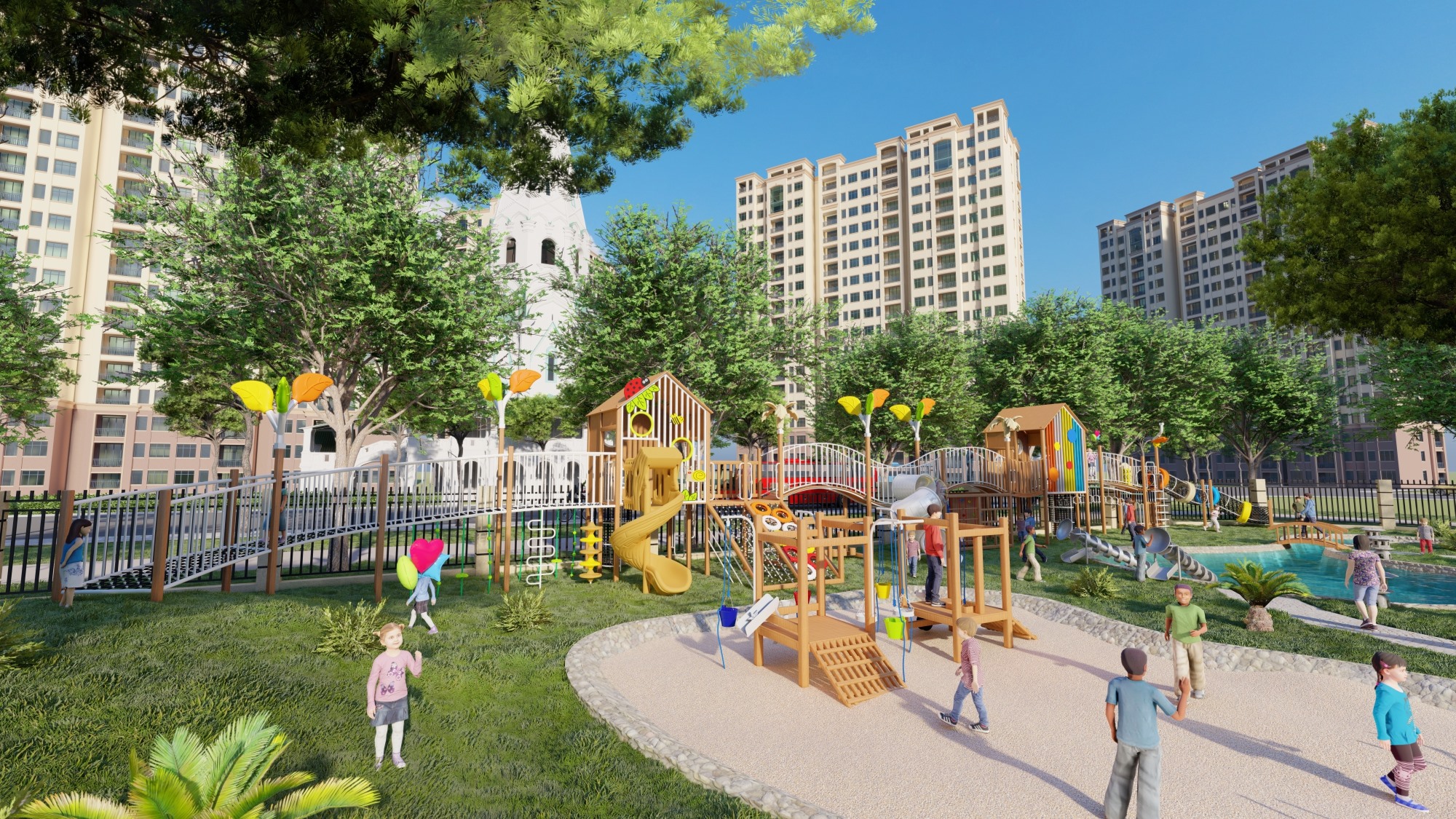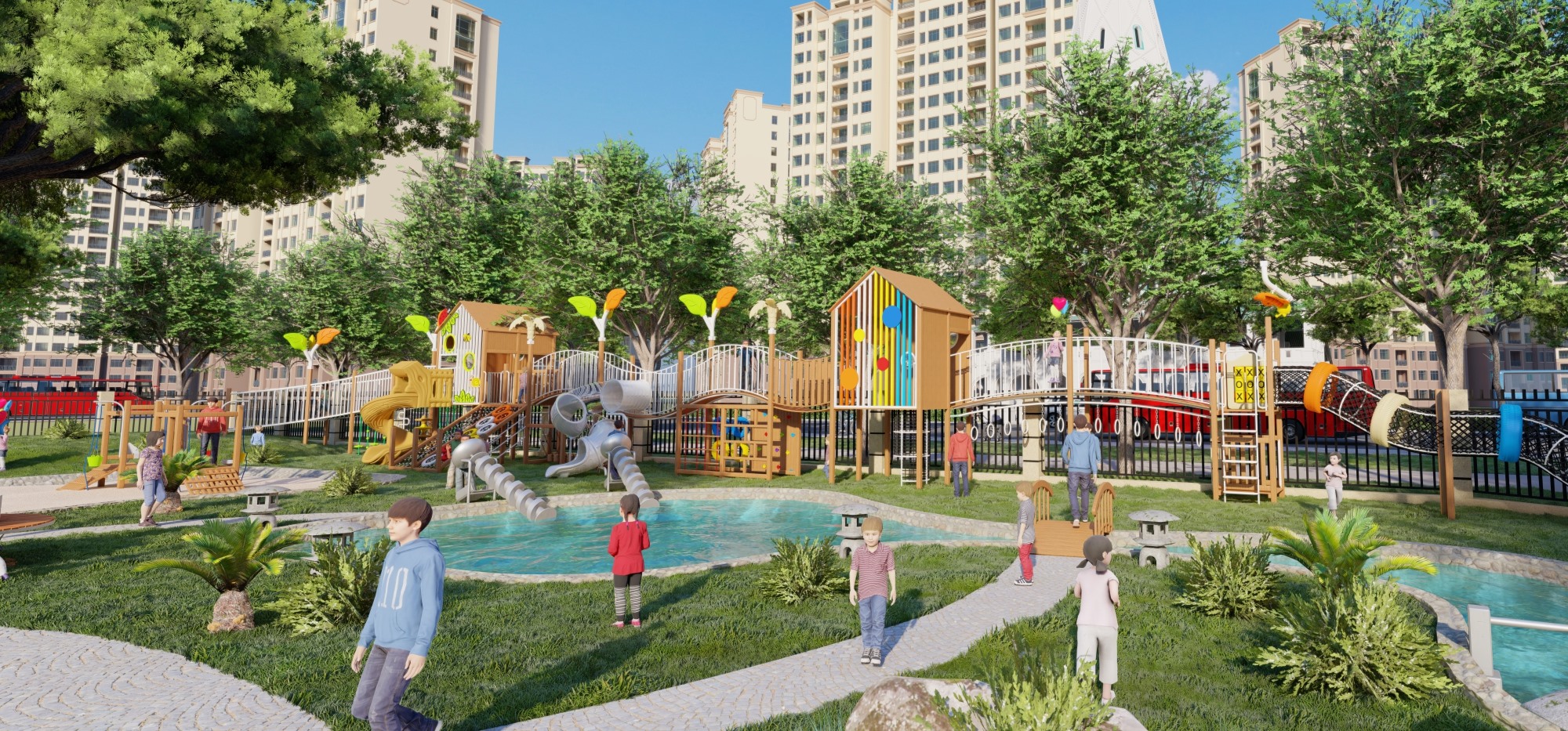 主题公园、学校、房地产小区、市政广场、超市、酒店等