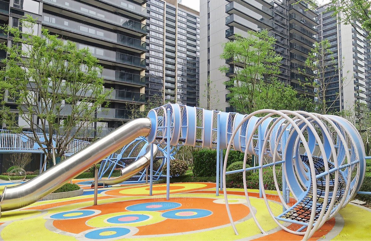 温州德信是一家高端居民小区,为了更好的提供高端的服务,该小区选用的是金沙游乐自主研发和生产的以“田螺公主”为主题的综合性游乐园,设置了孩子们喜欢的钻洞、攀爬、秋千、摇摇乐、翻翻乐、不锈钢滑梯、攀爬网等功能的游乐设备,不仅丰富了小区的生活,也为孩子们的玩耍提供了一个很好的游乐场所。