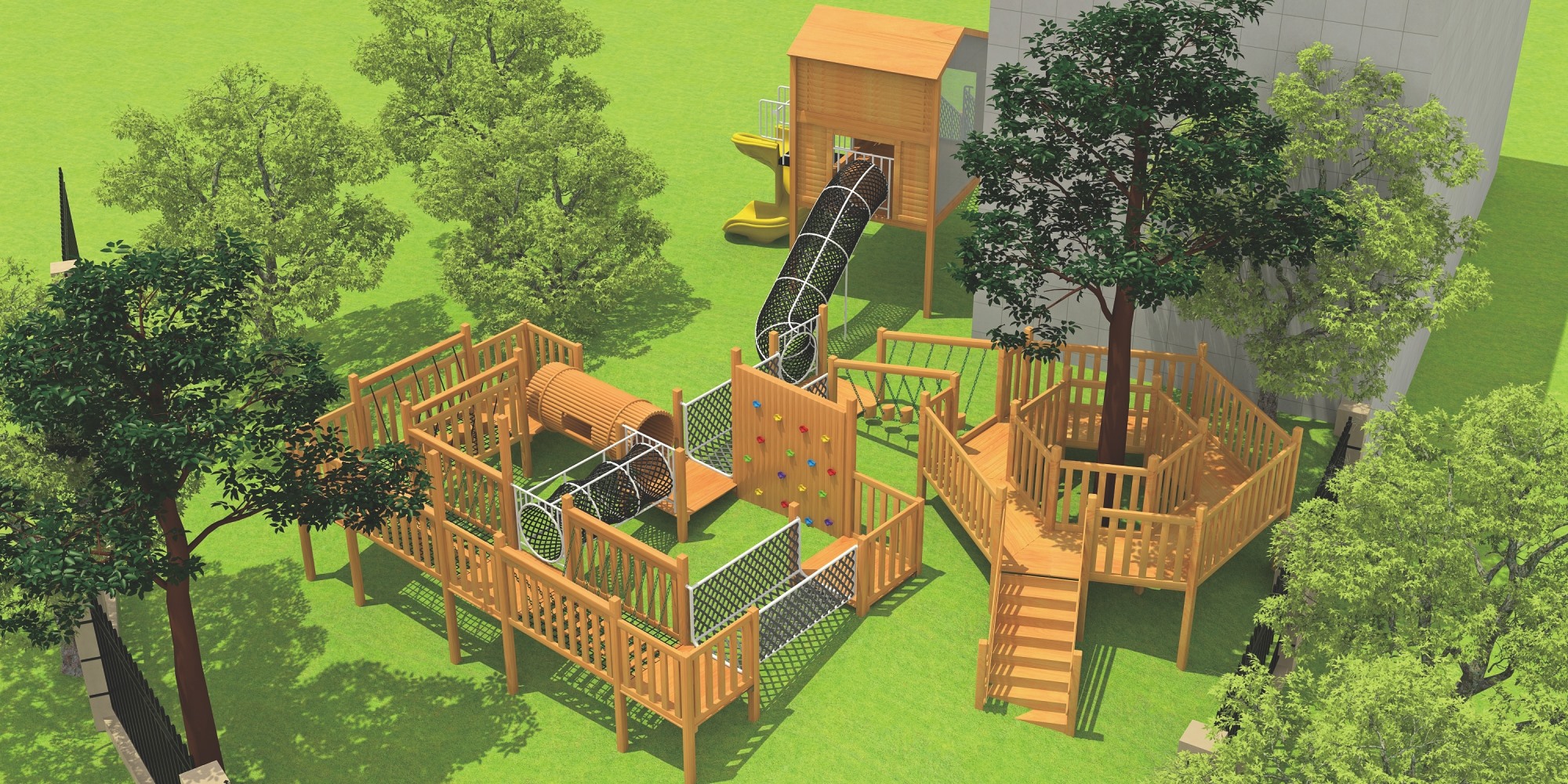 木质拓展设施采用天然木材打造,设计注重安全与挑战并重。通过悬挂桥、攀爬网、平衡木等多样化的障碍元素,旨在提升参与者的体能、平衡感及团队协作能力,同时享受亲近自然、挑战自我的乐趣。