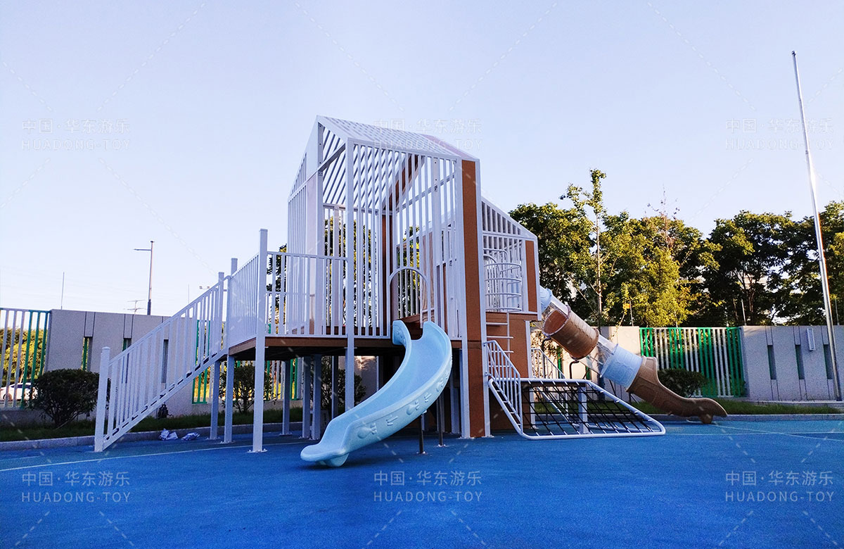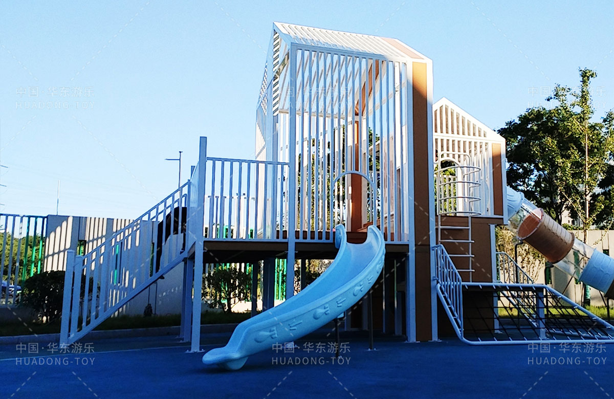 无锡市新吴区工博园幼儿园是一家专业性的学期教育学校,为了更好的让孩子们有一个玩耍的场地,让老师能够更好的提供教学的场地,学校选用了金沙游乐自主研发和设计的小屋系列组合游乐设备,该游乐设备具备了攀爬网、钻洞、滑梯、攀爬梯等功能,此设备的放置不仅仅丰富了校园的生活,也为老师的教育提供了帮助。