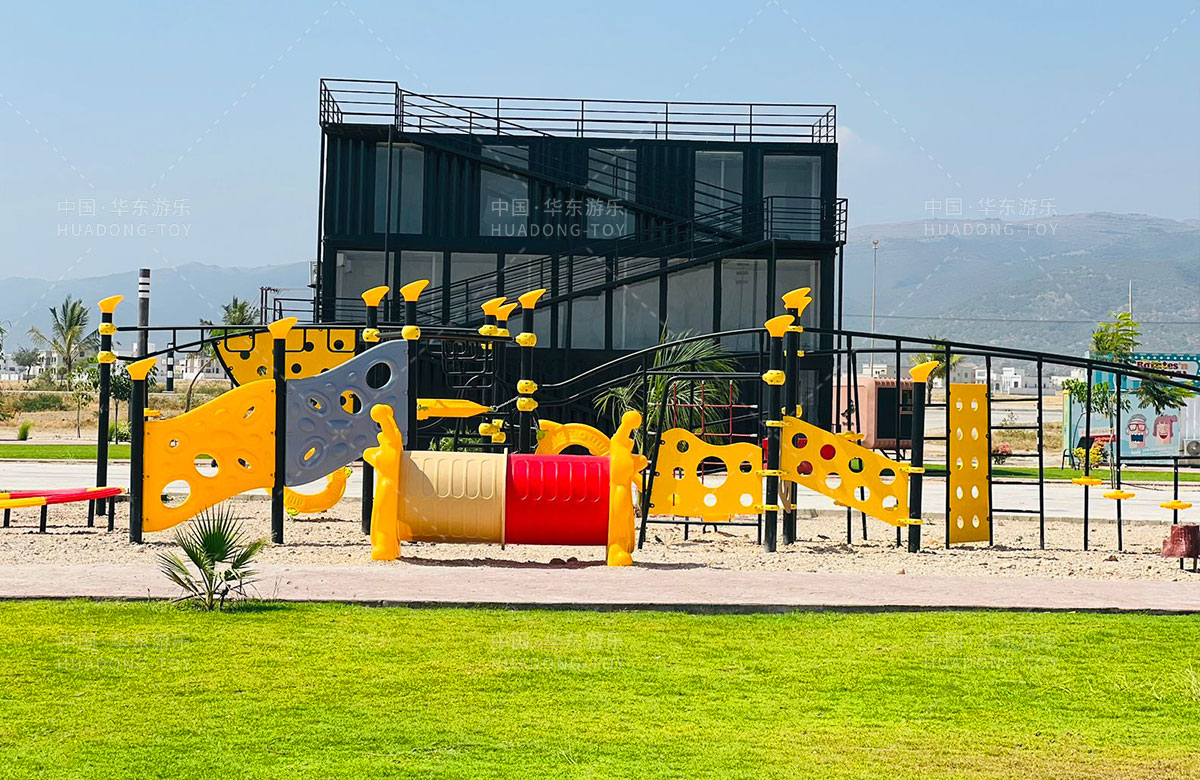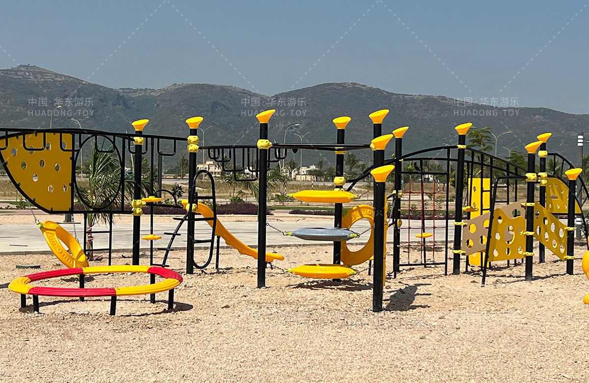 该项目是阿曼苏丹国经过多方的考察和品质的对比,最终选择了金沙游乐自主研发和设计的多功能健身器,该设备不仅具有功能齐全、使用寿命长、颜色艳丽等特点,还能够实现多人的互动娱乐,是一款可以实现孩子们健身、提升小朋友手脚协调能力综合性运动器械。